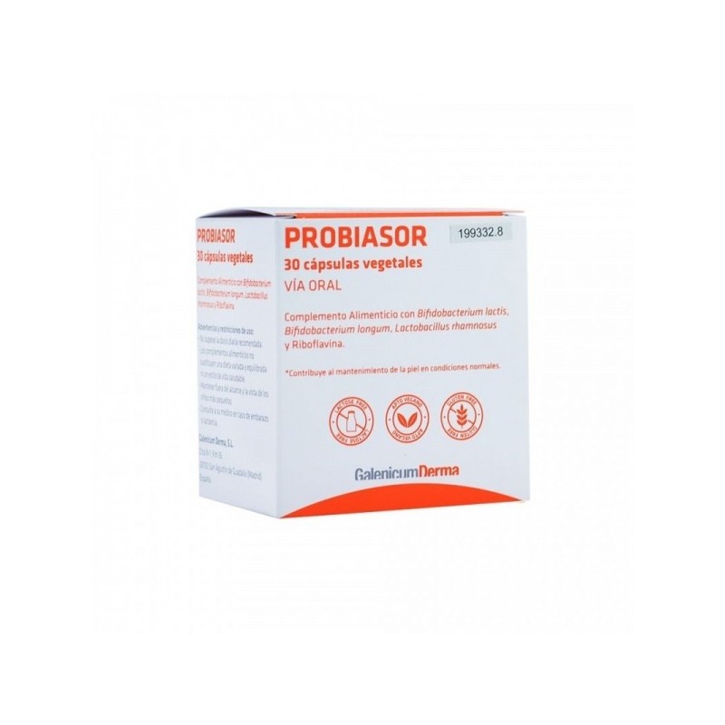 Probiasor es un probiótico específico para piel con psoriasis que ayuda a mantener su equilibrio, formulado con cepas microbióticas y riboflavina, apto para adultos y veganos.