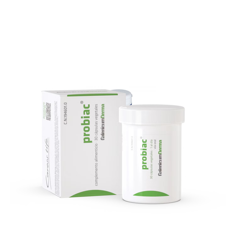 Probiac es un complemento alimenticio formulado específicamente para ayudar al tratamiento del acné y mejorar la salud de la piel desde el interior.